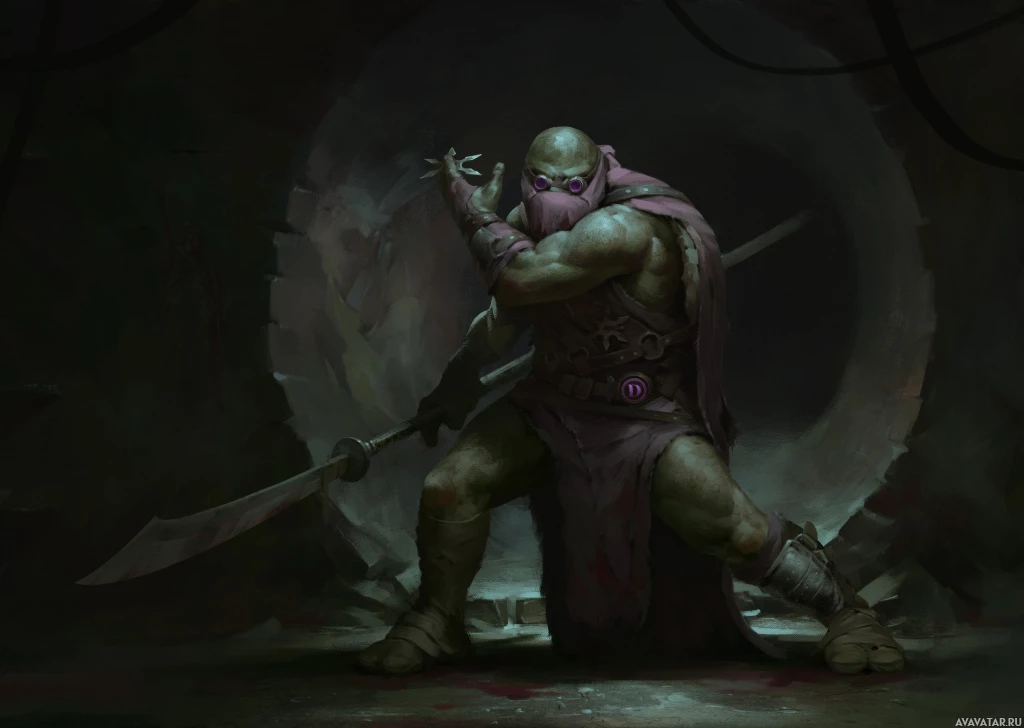 Ninja Turtles. He is depicted in a pose that suggests he's ready for battle or action. Donatello is known as the "Brain" of the group and is often portrayed with a staff weapon and