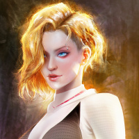 blonde hair and features such as her attire and expression that could be associated with the comic book version of Gwen Stacy. This image does not appear to be a photograph; it's likely an illustration or digital artwork designed to portray the character in a particular style or setting.