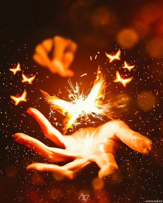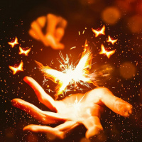 magical creature. There are also sparkles and flames around the hand, suggesting