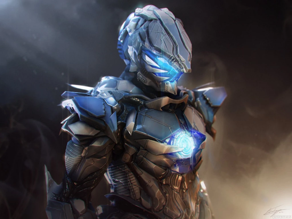 The image shows a character that appears to be a robotic or cybernetically enhanced human. It has a humanoid form, suggesting that it might be designed for tasks that require physical dexterity and interaction with the environment, such as those found in