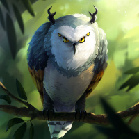 a natural environment with greenery, indicating that the owl could be from a story or game set in a magical forest or similar setting.