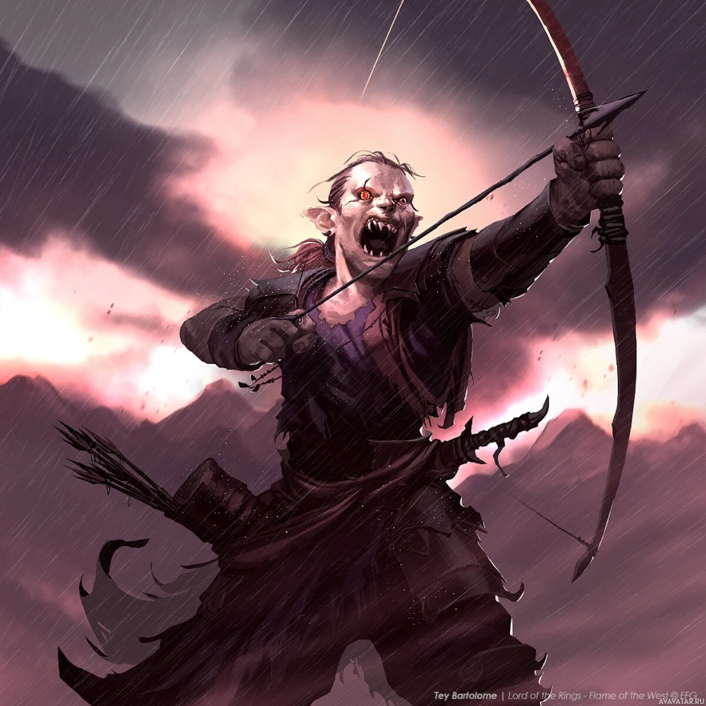 the fantasy genre, possibly inspired by orcs found in works like "The Lord of the Rings." This character is depicted with elongated ears and