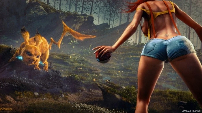 an outdoor setting that could be part of a wild or wilderness area within the game universe. There's a creature next to her which looks like