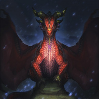 a serpentine body and wings that extend from its shoulders. The dragon is sitting on what appears to be a rock or a similar surface amidst