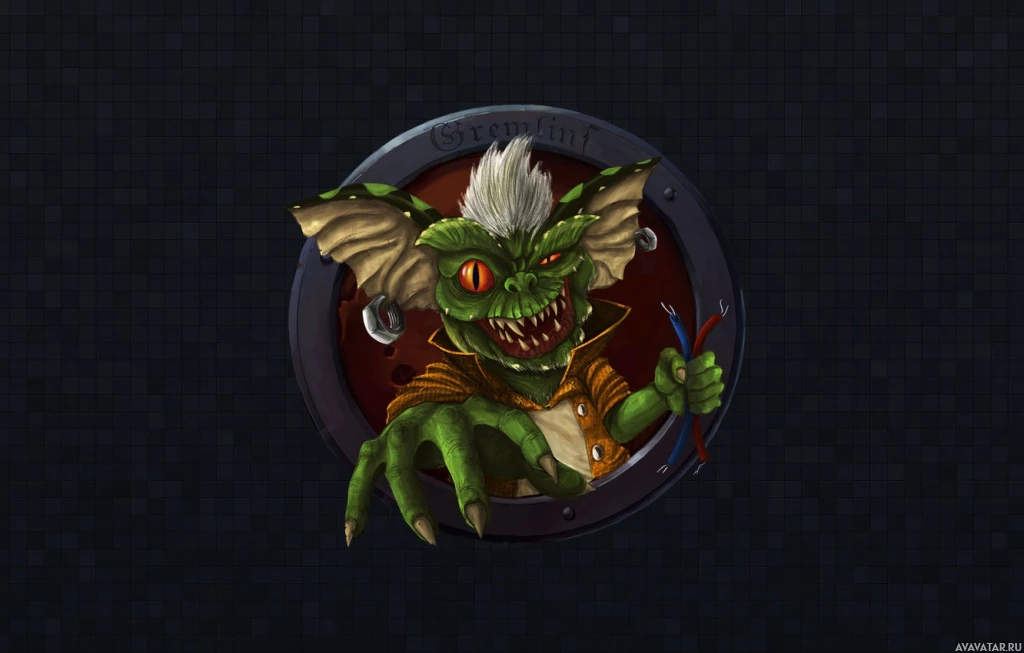 The image shows a stylized representation of a Gremlin character, reminiscent of the creatures from the "Gremlins"