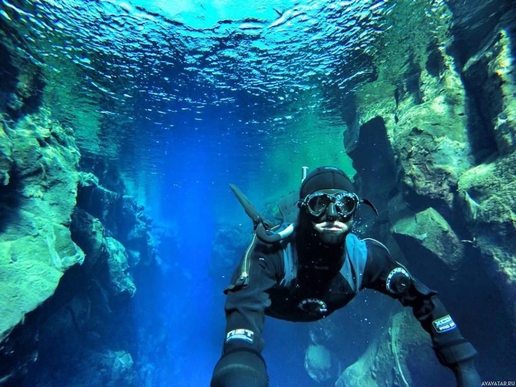 natural formations that resemble a cave or a reef. The image captures the essence of exploration and adventure associated with