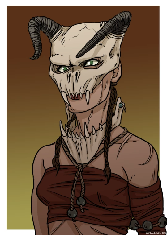 sharp teeth and an angry expression on her face. The color palette is reminiscent of