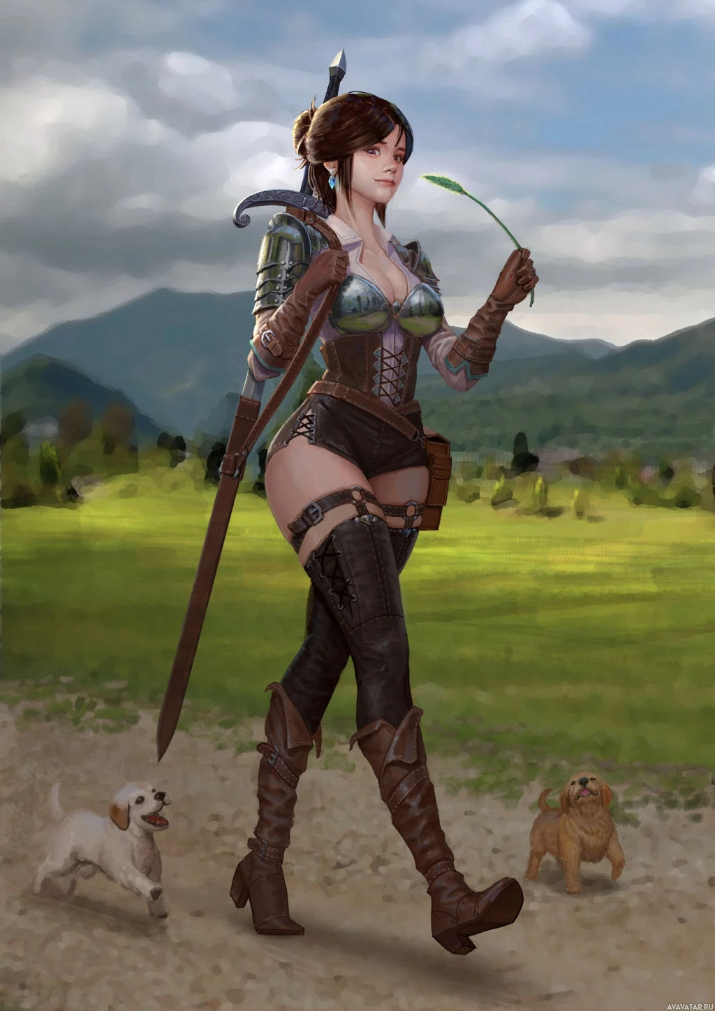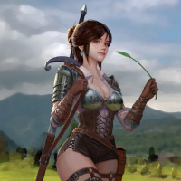 animated character who appears to be a female adventurer. She is holding a sword in her right hand and has an armor design that suggests she might be from
