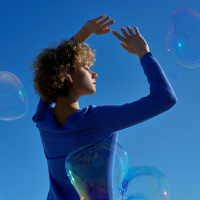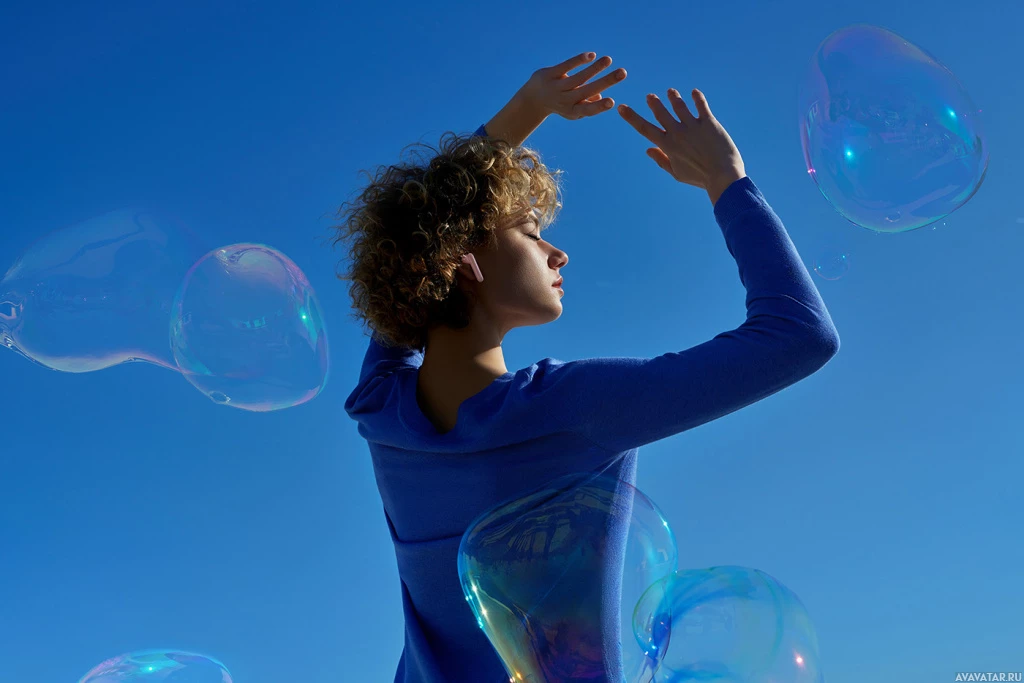 multiple bubbles floating in the air. The bubbles are translucent and filled with what appears to be soap, giving