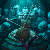 musical notes suggests a connection to music or performance. There might be a narrative or symbolism related to the combination of music and the classical statues, but without additional context, it's difficult to determine