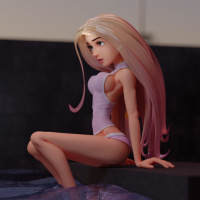 The image depicts a 3D rendered animated character that appears to be a young girl with long