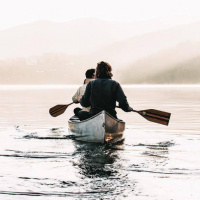 peaceful moment of being out on the water, possibly suggesting an activity such as kayaking or canoeing for recreation.