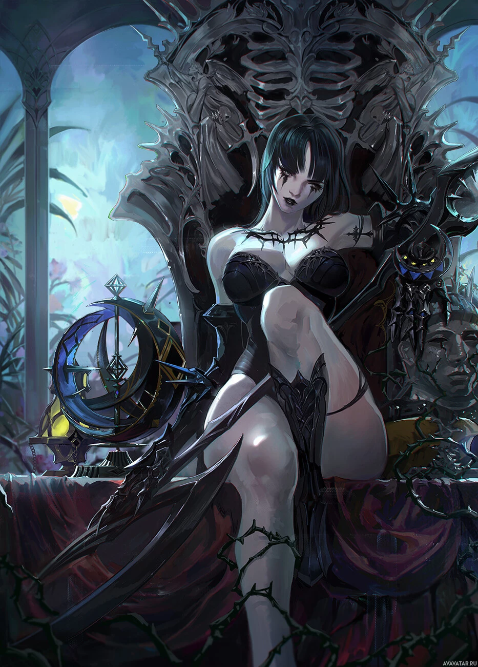 dark tones throughout the image, contributing to the mystical and intense atmosphere of the scene.