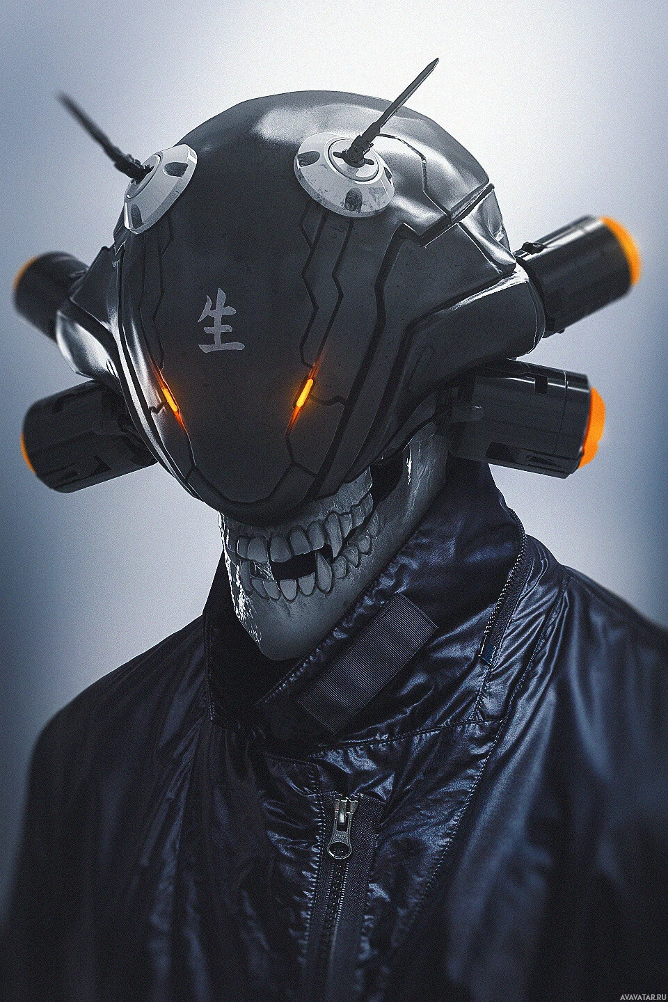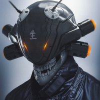 a science fiction theme. The character has a cybernetic appearance, suggesting enhancements or modifications to