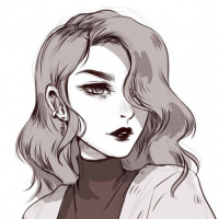 turtleneck sweater and has a pair of earrings that stand out due to their size. The background is neutral-toned, providing contrast with her outfit and the overall composition suggests a contemporary art style with attention to detail in the rendering of her features and clothing.