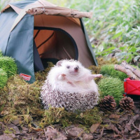spiky fur and short legs. The hedgehog is resting in what appears to be a natural