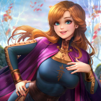 an animated character who resembles Anna from the "Frozen" animated movie franchise. The character is depicted in a stylized manner with exaggerated features typical of many modern animated films, including large