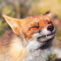 На картинке изображена рыжая лиса. Кажется, что она стоит на поросшей травой площадке, возможно, в своей естественной среде обитания или в замкнутом пространстве, созданном для имитации такой среды. Лиса смотрит прямо в камеру с закрытой пастью и слегка прищуренными глазами, что может свидетельствовать о любопытстве или настороженности.