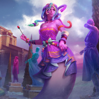 serpentine tail and possibly other elements like scales or magical accessories. The setting appears to be a stylized version of