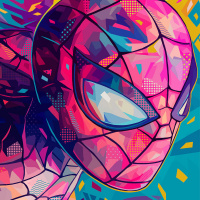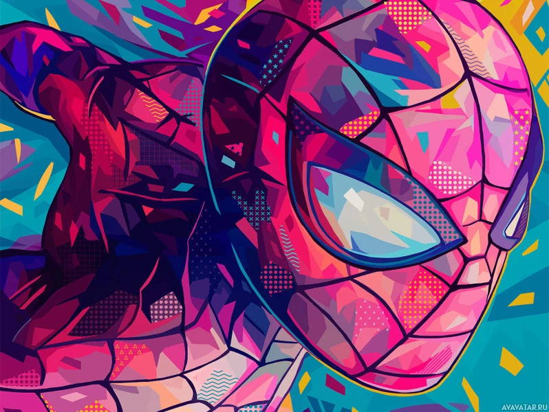 book character known for his web-slinging abilities. The style is vibrant with a mix of