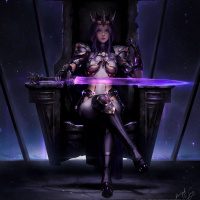 dark tones, enhancing the sense of drama and power associated with the character's position.