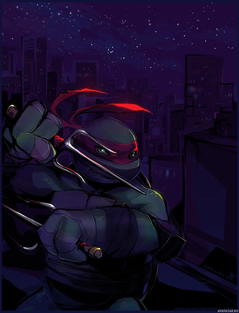 The image features an illustration of Raphael, one of the Teenage Mutant