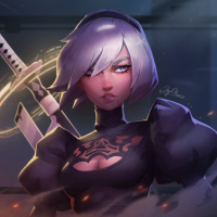 The image features an illustration of a character known as 2B from