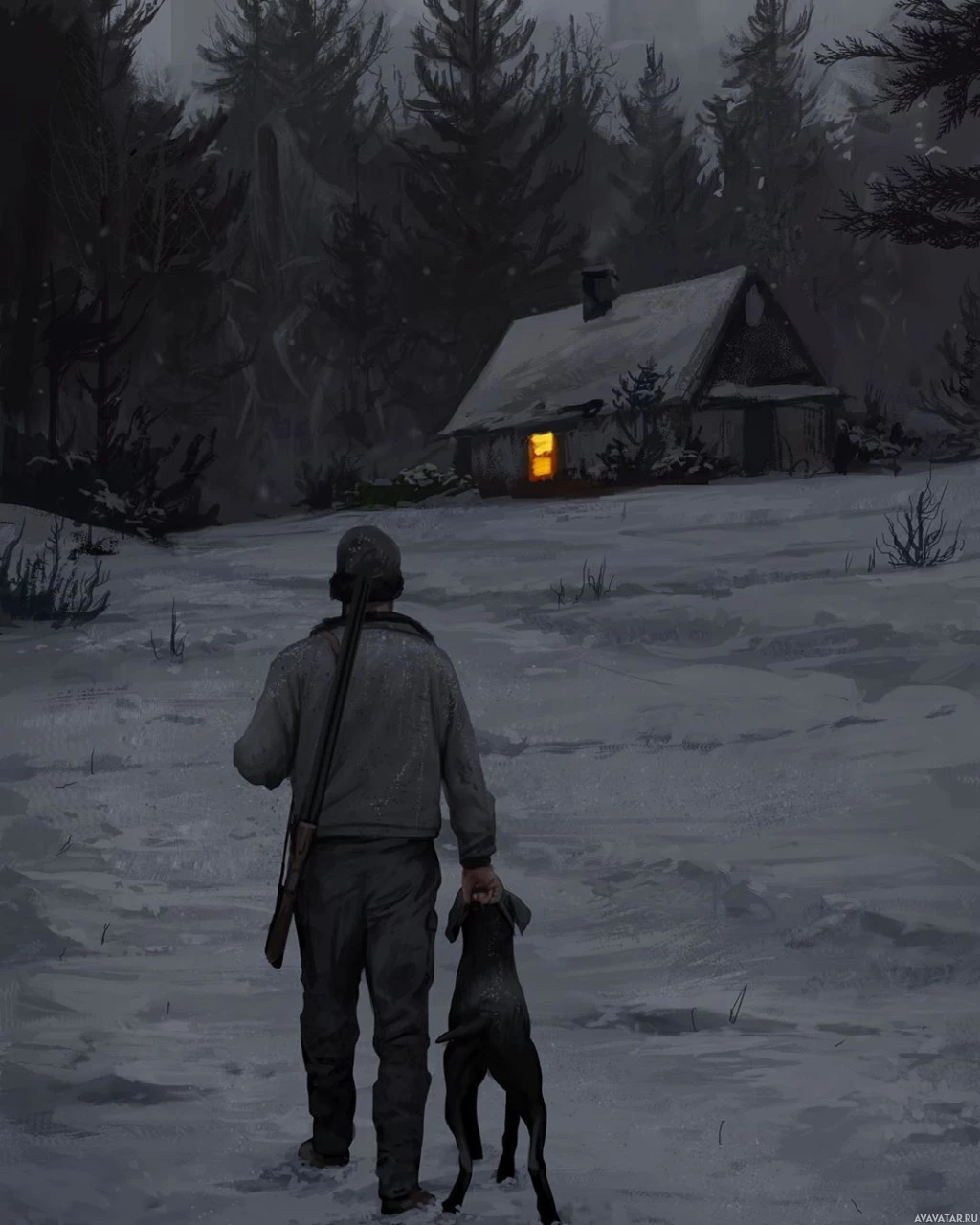 an open door and light inside, suggesting someone might be home. The setting appears to be in