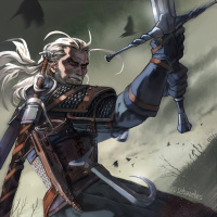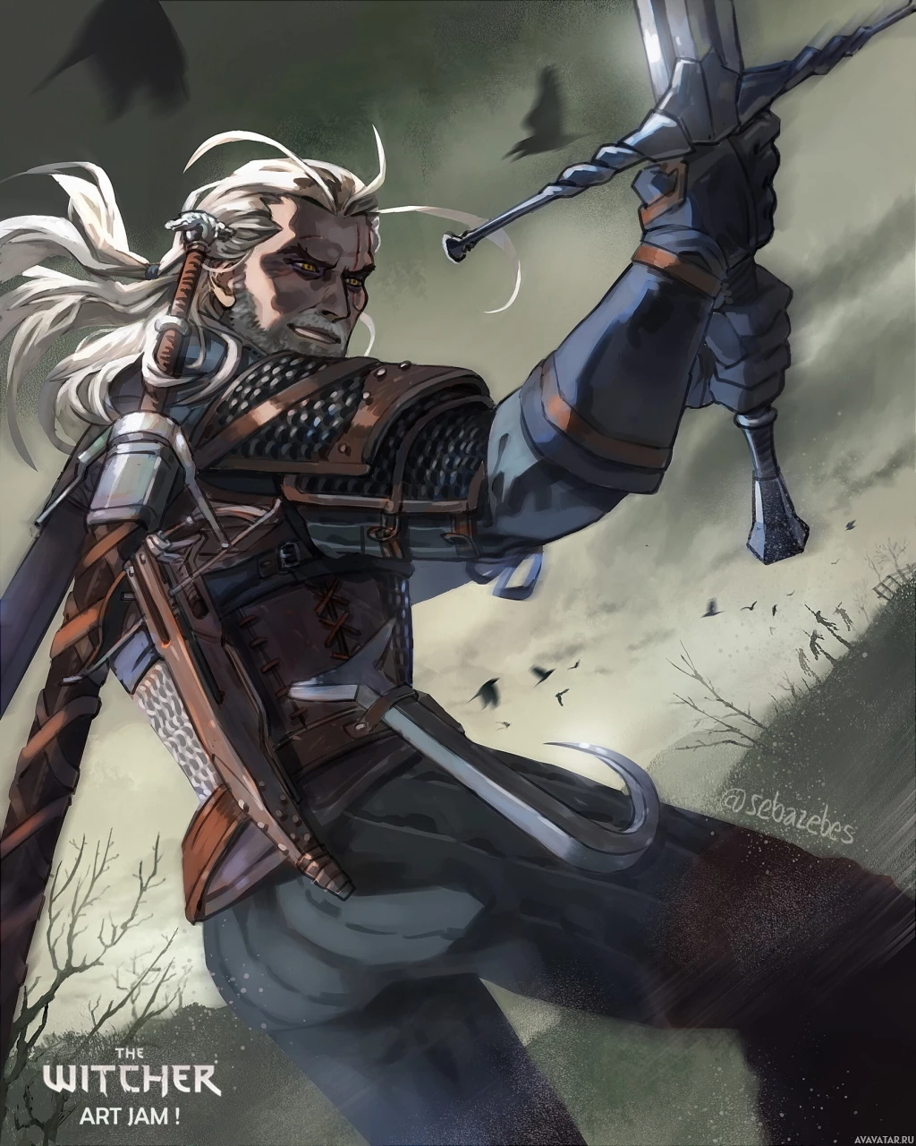 The image features a character known as Geralt of Rivia, who is the protagonist of