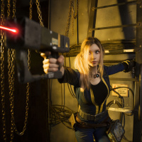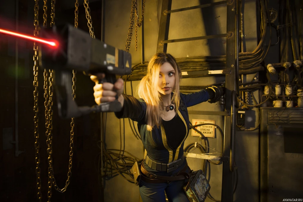 The image shows a person dressed in what appears to be a costume inspired by the character from the "Fallout"