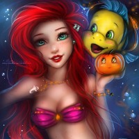 an underwater environment, possibly near Ariel's home in Atlantis, and it is adorned with stars that give a sense of depth or distance.