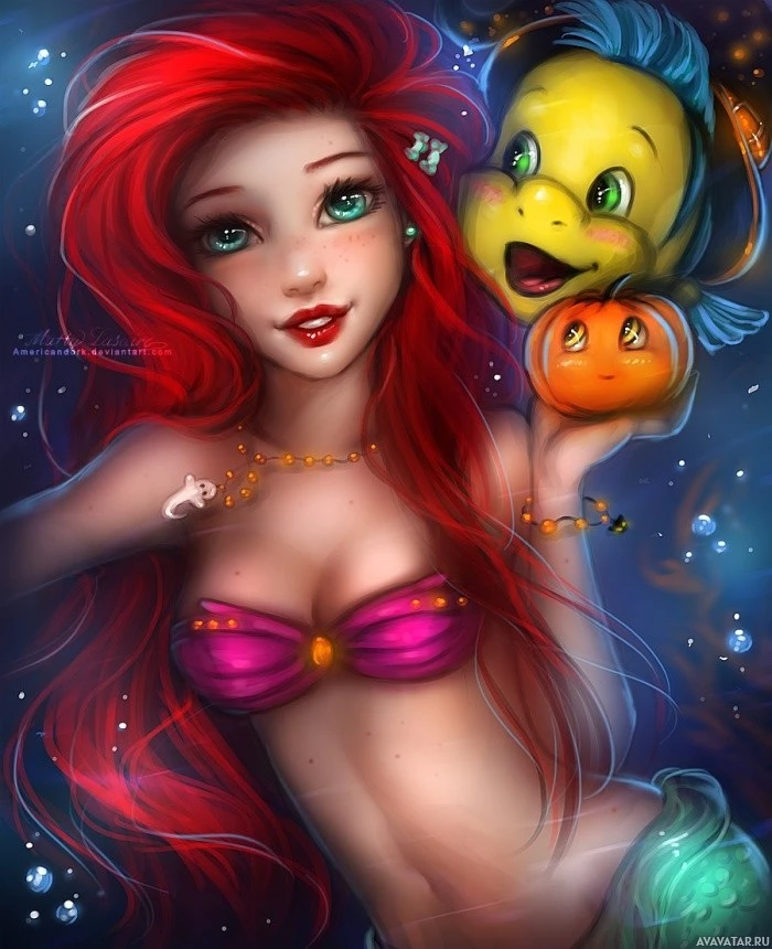 an animated character who appears to be Ariel from the Disney movie "The Little Mermaid." She is depicted as a mermaid, with