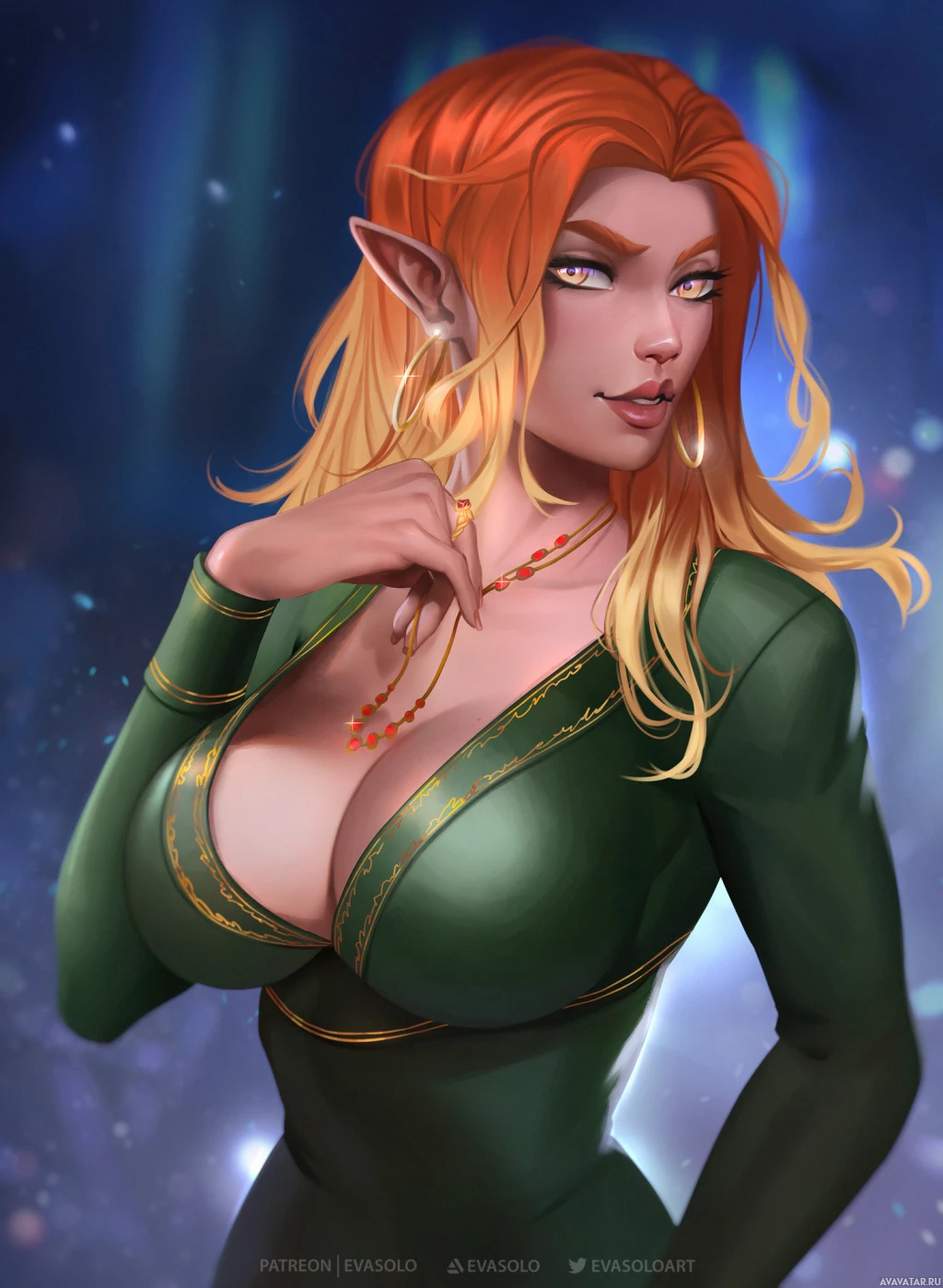 The image shows a digital illustration of an elf with