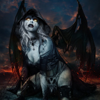 a fantasy character with an ominous and mysterious vibe. This character appears to be a succubus, which is often described as an evil