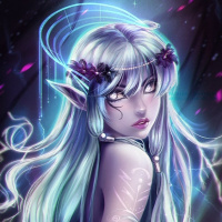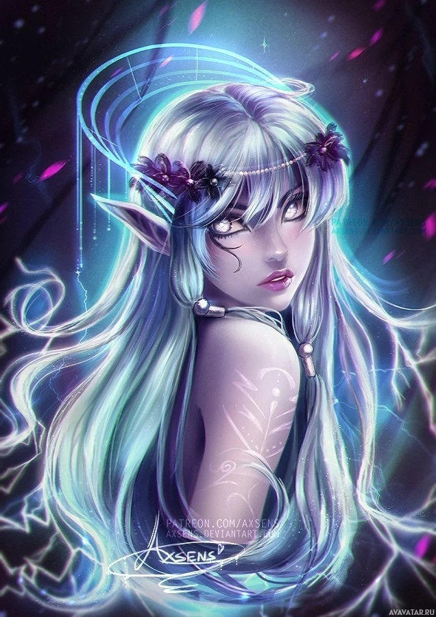 night sky visible above the elf's head. The use of lighting and shading gives the image a mystical and ethereal atmosphere.