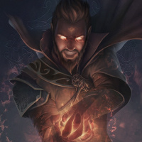a fantasy character, likely from a work of fiction such as a book or video game. This individual has a beard and is wearing dark clothing that resembles