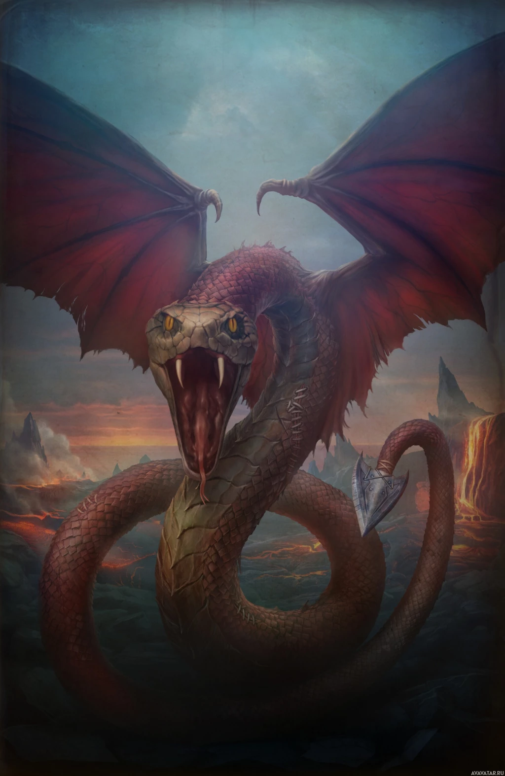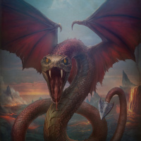 a fantastical creature that resembles a dragon with the body of a serpent. The creature has