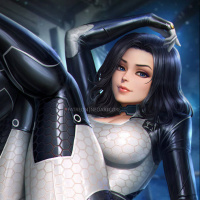 game series Mass Effect. She is depicted in her suit, which typically includes armor with