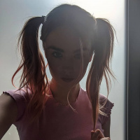 a pink shirt and what appears to be white pants with frills or ruffles along the bottom hem. The background is nondescript, providing no additional context about the location.