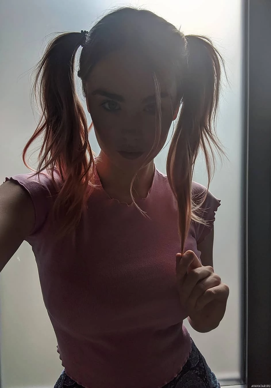 a young woman with pink hair, wearing pink and white attire. She has her hands on her hips and is looking directly at the camera. Her outfit consists of