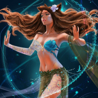sea creature, with elements such as fins on her arms and tail-like appendages. The character is wearing a costume that resembles