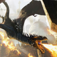 presence of a dragon and flames indicates that this could be a battle or confrontation between characters within the game.