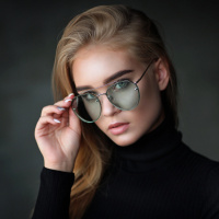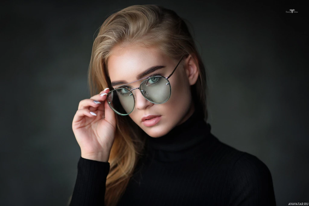 На картинке изображена женщина со светлыми волосами, в очках и черном топе. Она прикрывает лицо рукой и смотрит немного в сторону от камеры. Судя по ее стилю, она, возможно, интересуется модой или современными тенденциями.
