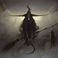the mythological creatures believed to accompany witches as companions. The style of the artwork suggests it could be inspired by folklore and fantasy elements, with a focus on mysticism and otherworldly themes. The overall mood is atmospheric and ethereal, fitting within the realm of fantasy illustrations.
