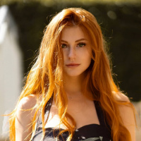 red hair looking directly at the camera. She appears to be outdoors, possibly during