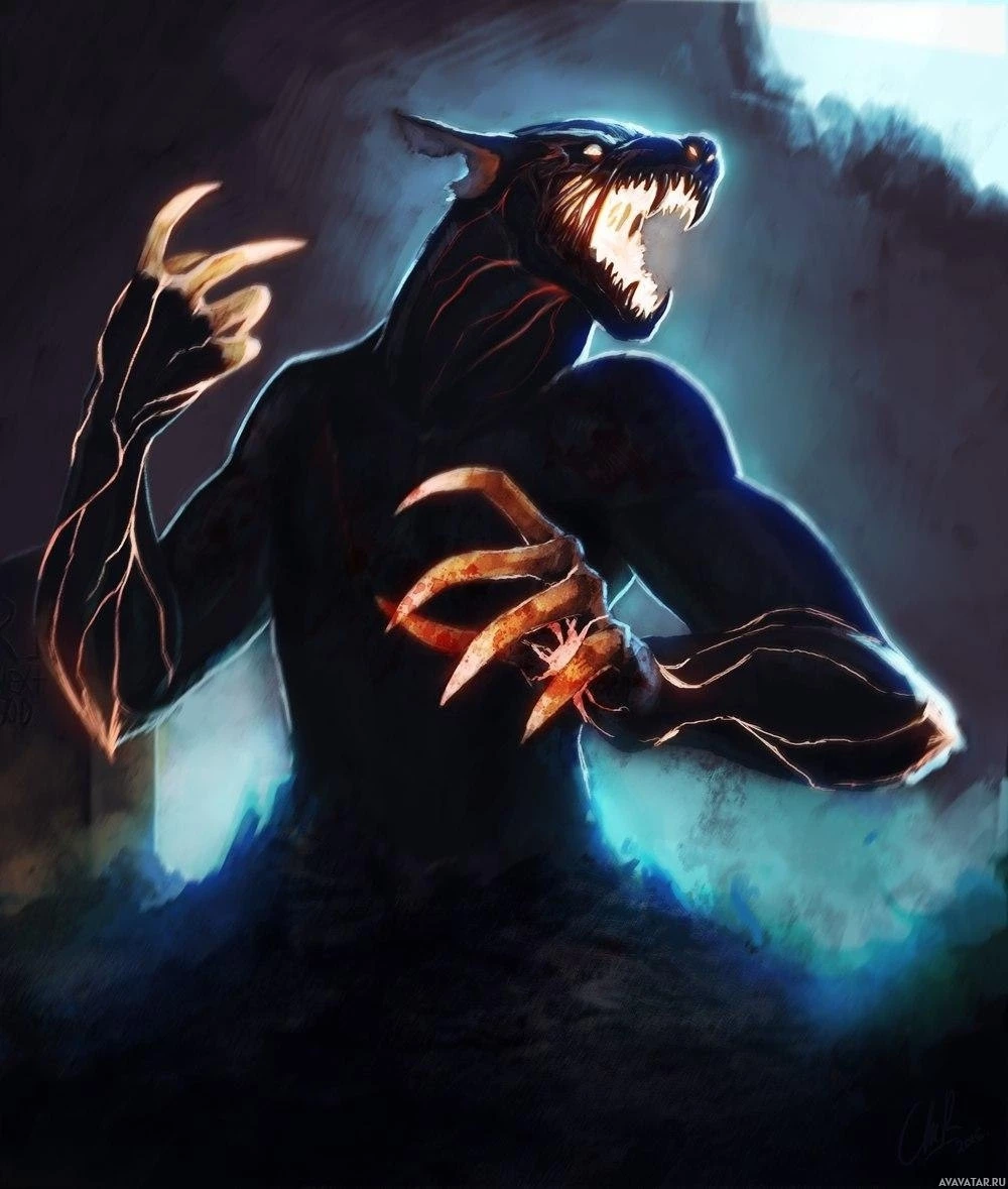 The image depicts a fantasy-themed illustration of a werewolf. The werewolf is shown with