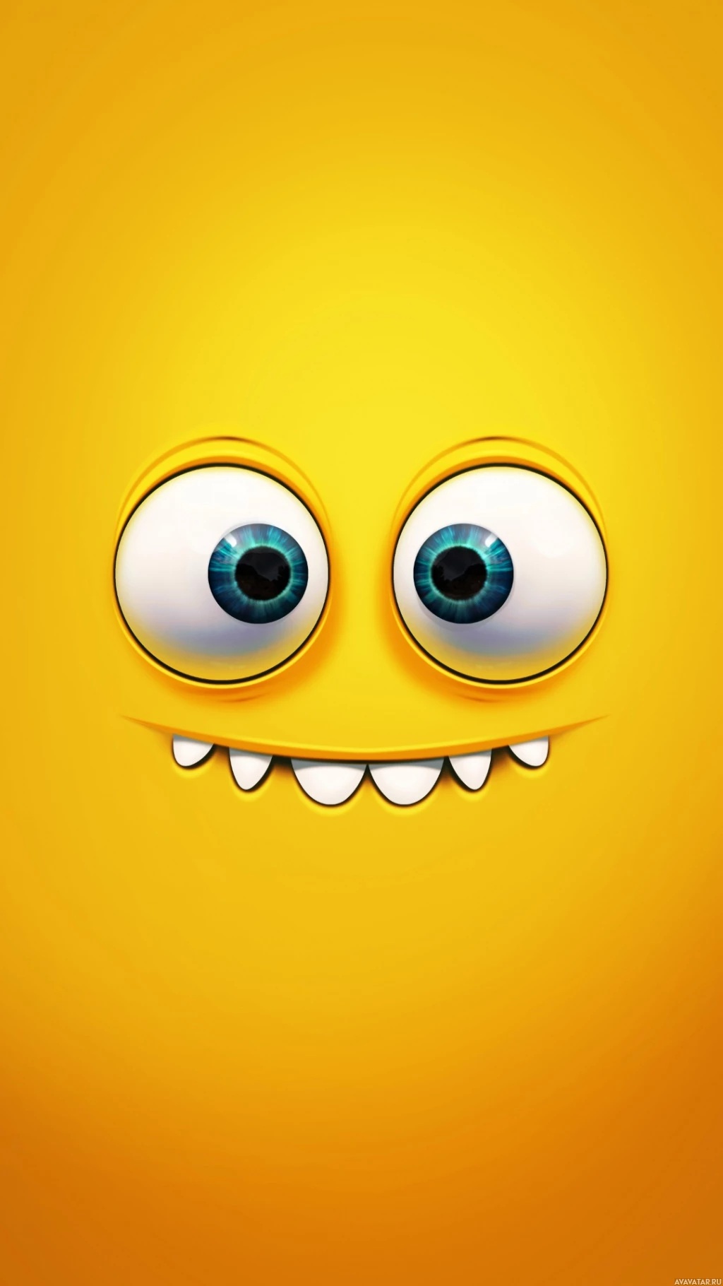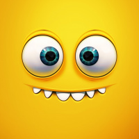 a simplistic design, resembling an emoji. It has a yellow base color and is depicted with a wide smile and big,