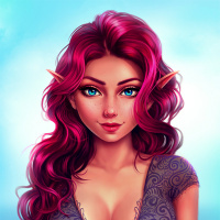 animated character that appears to be an elf with pink hair. She has