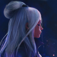 The image features an illustrated character with white hair and closed eyes. She appears to be a young girl, possibly with a fantasy or magical theme given the context provided.