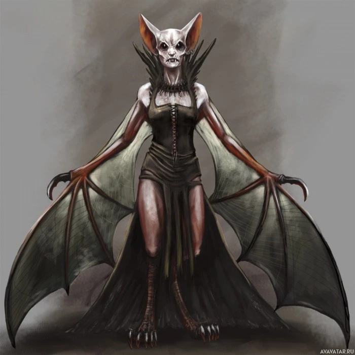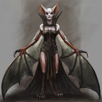 The image features a fantasy-themed character that appears to be a vampire. The creature has bat-like wings and is wearing